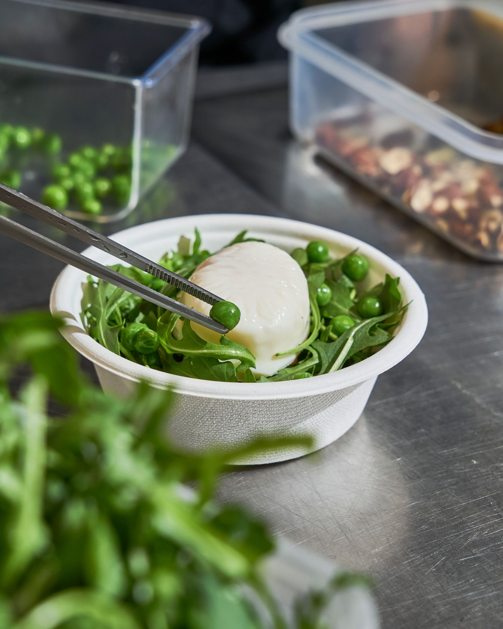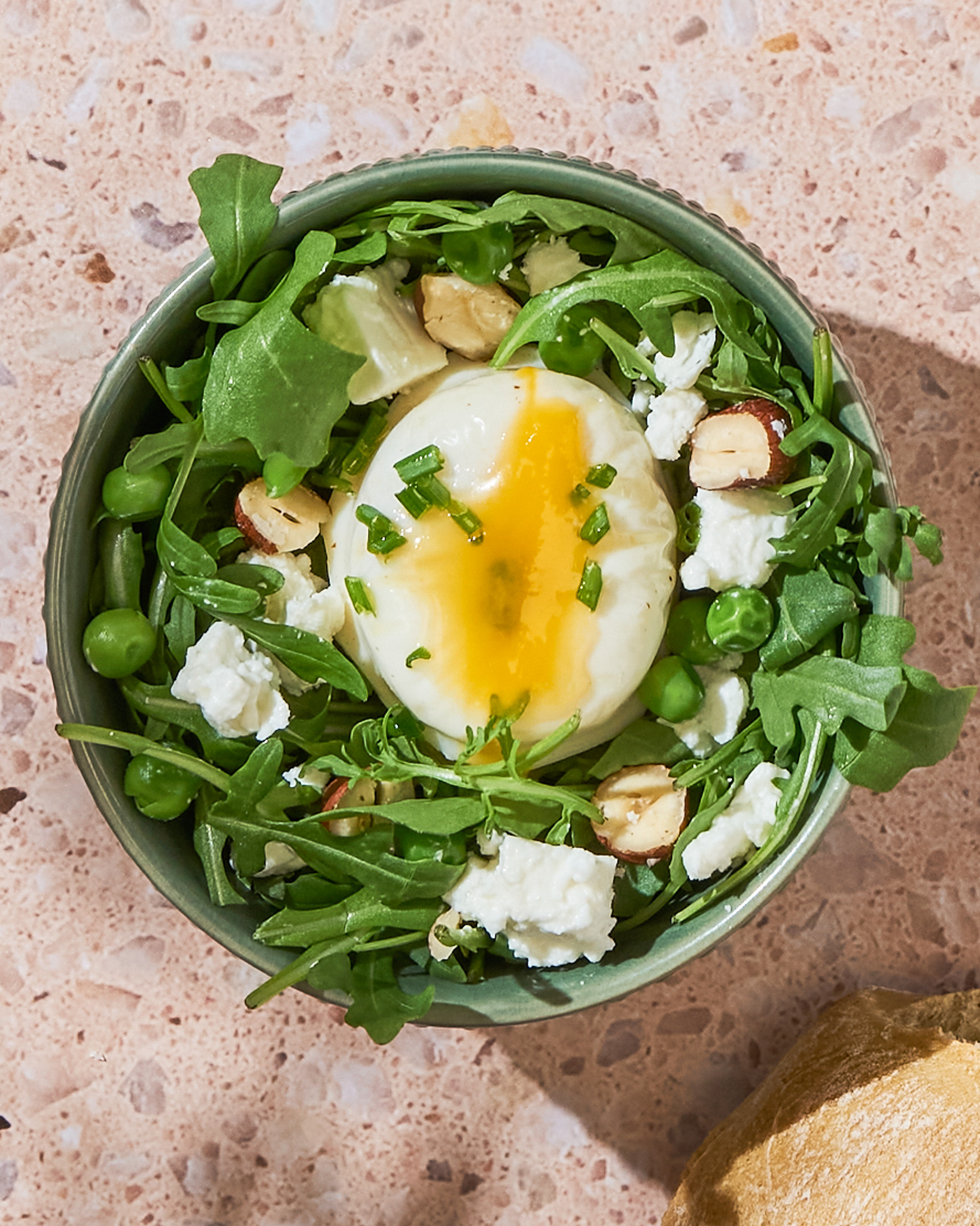 Roquette, petits pois, noisettes et ciboulette, pour la fraîcheur !