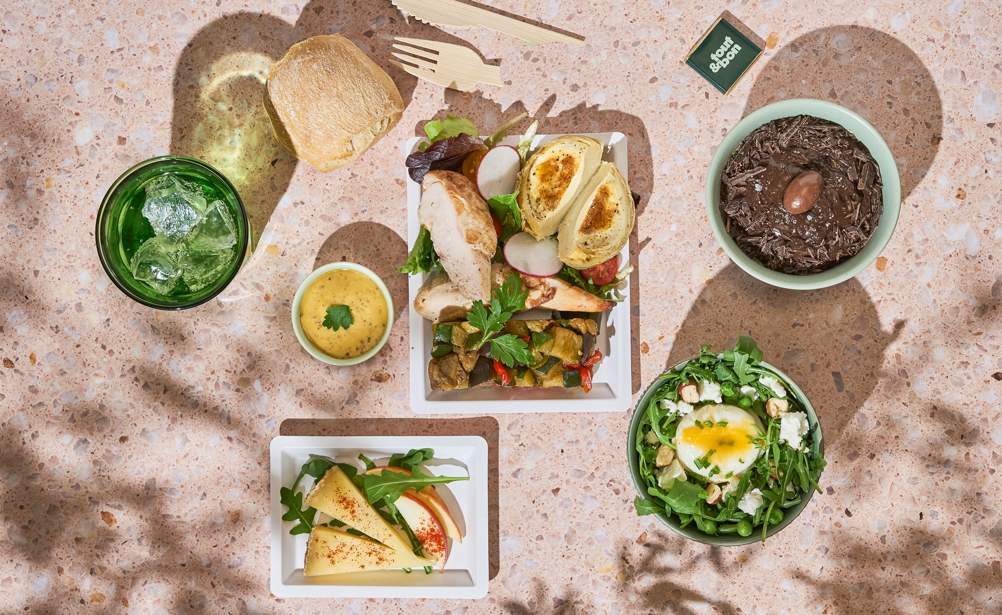 Livraison plateaux repas entreprise : le plateau du mois d'avril de Tout&Bon combine entrée, plat, fromage et dessert, pour des réunions et déjeuners d’équipe pratiques et gourmands.